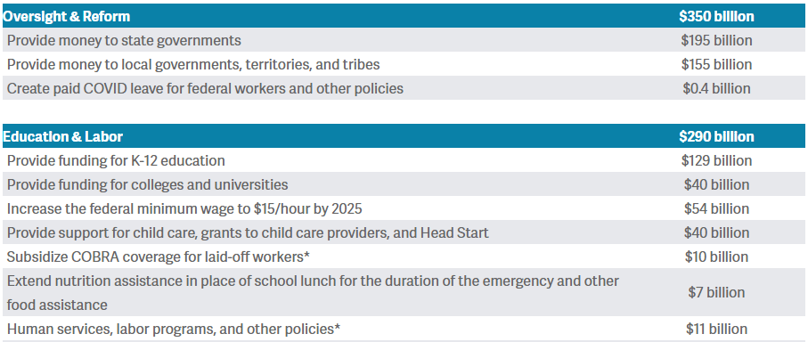 Again the CRFB has a good tracker for these items. Three Billion into the International Development Association. Another 250 million to “provide economic, security, and stabilization support to foreign countries through the State Department.” 8 billion for the Defense Department, in the COVID relief… It’s pretty interesting. Frustrating, but interesting.
