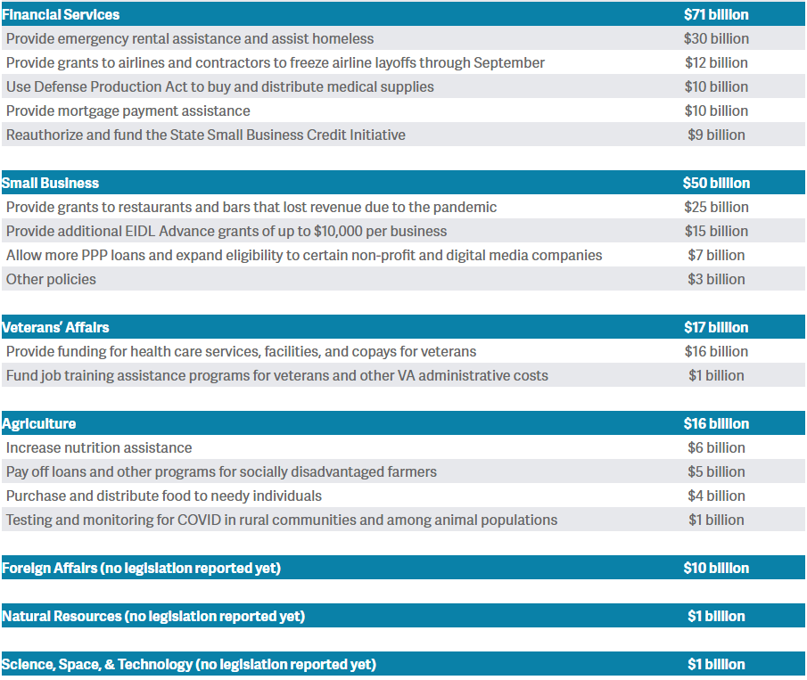 No check. Sure, the 1.9 trillion dollar stimulus package is sliding its way through Congress, but it is rife with money unrelated to helping the American people. The Committee for a Responsible Federal Budget offers a pretty good breakdown of the amounts and projects in the American Rescue Plan… This includes: