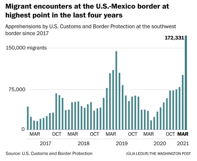 According to the Washington Post, we are seeing a record level of apprehensions at the southern border. Migrants from many south American countries are fleeing their homelands to come here, escaping poverty, violence, and searching for an opportunity for a better life.