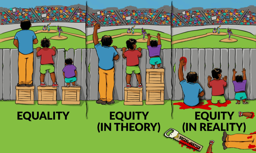 The continuous push toward equity will result in every dystopian hellscape version of authoritarianism that is associated with socialism, communism, and fascism. Equity can only ever push people down.